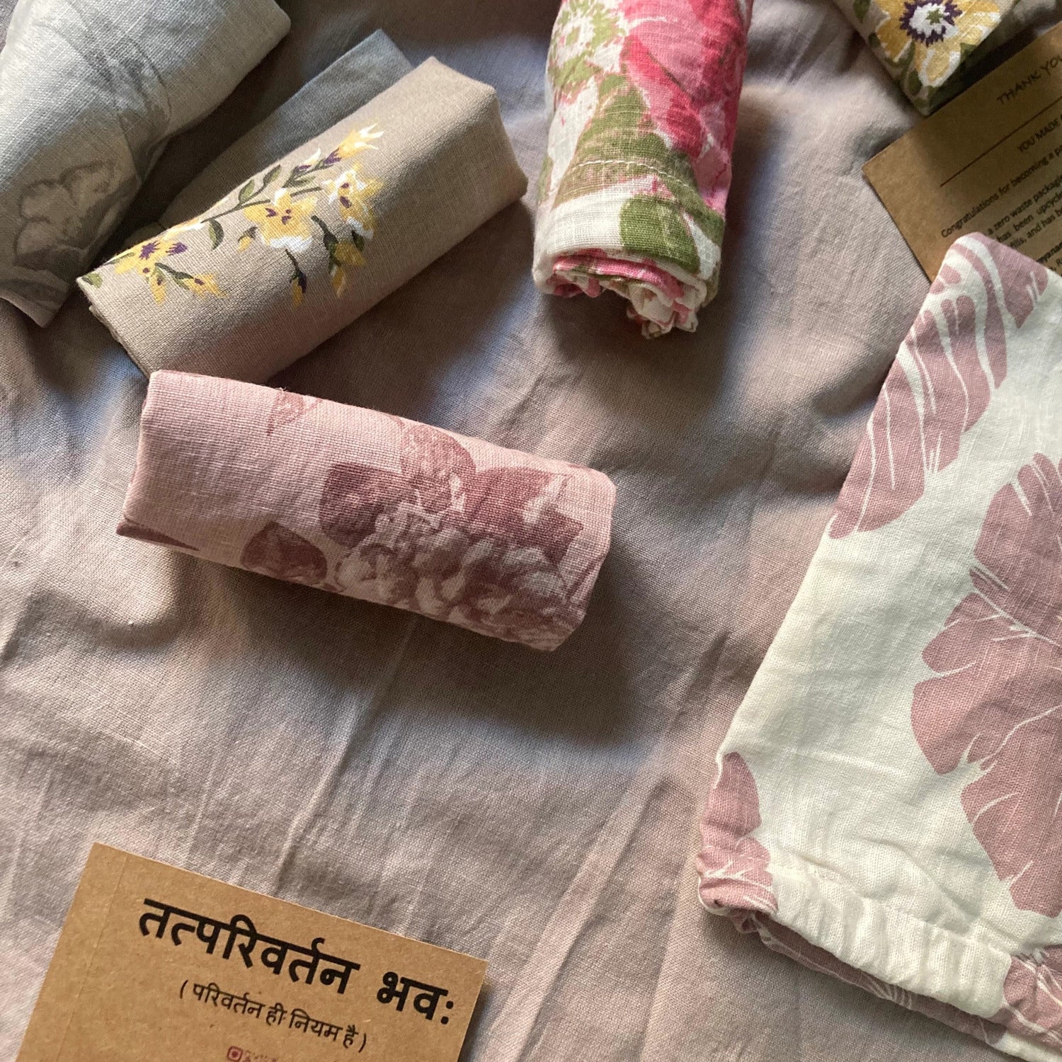 These bags are made from leftover fine cotton/linen mill cloth that otherwise go to landfills having nothing but minimal weaving defect or insufficient yarn after the completion of one production cycle.